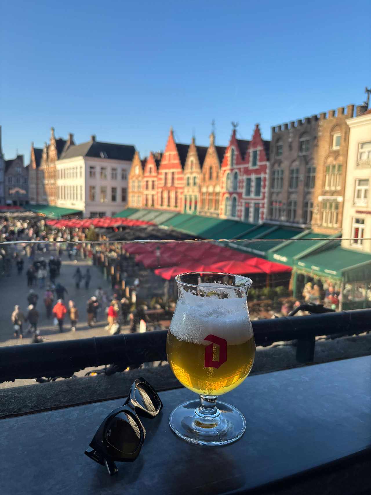 Si Bruselas nos sorprendió, Brujas nos enamoró. Visitamos el Duvelorium Grand Beer Café, donde disfrutamos de una cata con vistas a la icónica plaza de Brujas. Esta ciudad medieval alberga una de las historias cerveceras más ricas de Europa.